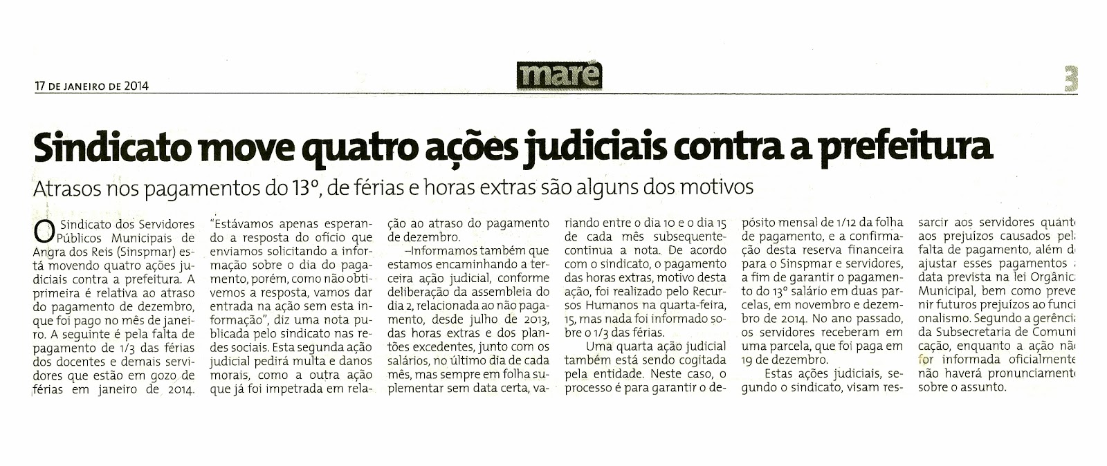 Sindicato move quatro ações judiciais contra a prefeitura Gerar link Facebook X Pinterest E-mail Outros aplicativos 20.1.14 Jornal: Maré Data: 17/1/2014 Página: 3 Gerar link Facebook X Pinterest E-mail Outros aplicativos Comentários
